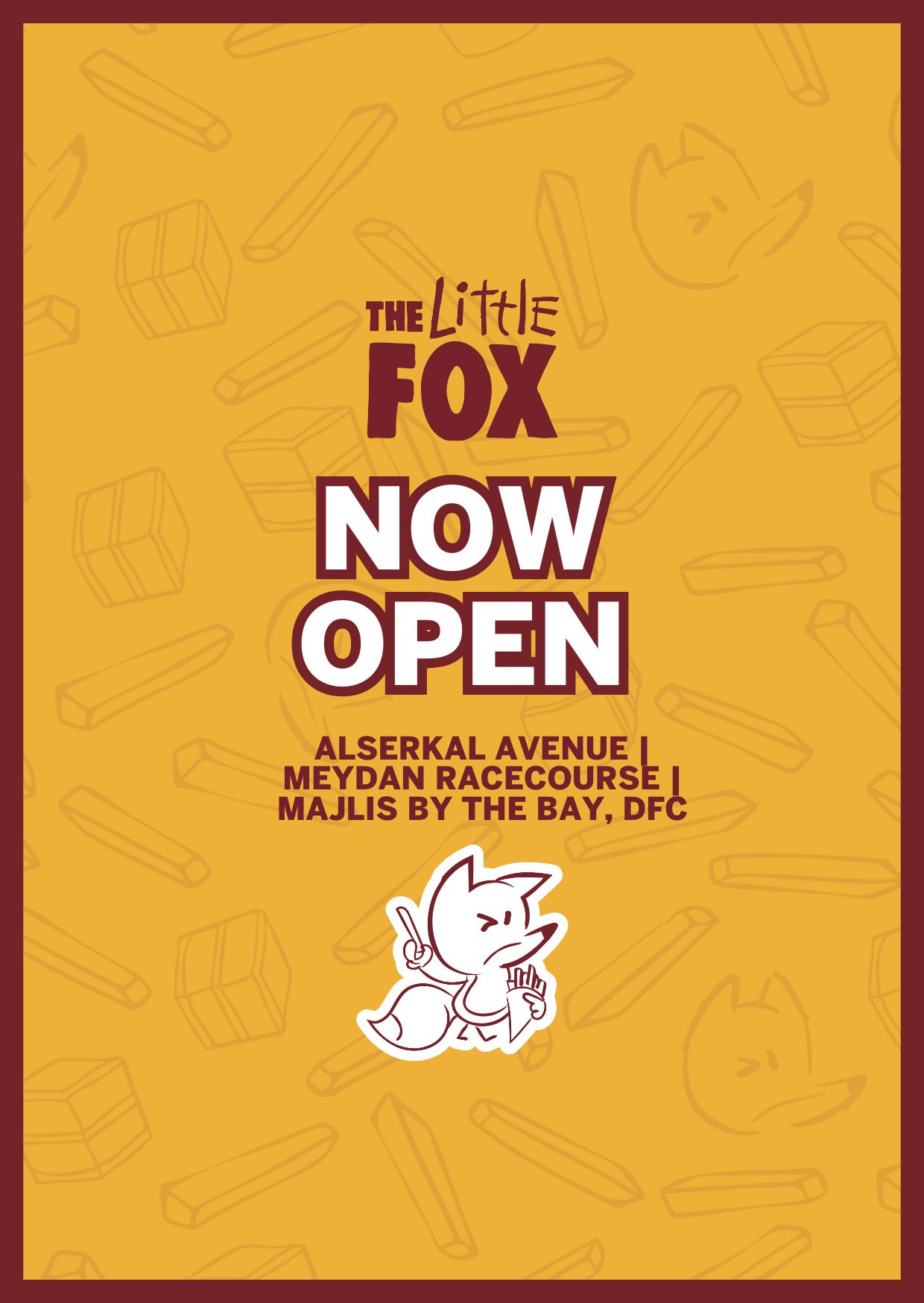Rowley’s first food truck concept is now popping up across the UAE. Each Little Fox location brings our playful spirit and Rowley’s flavours into the city’s most exciting destinations.