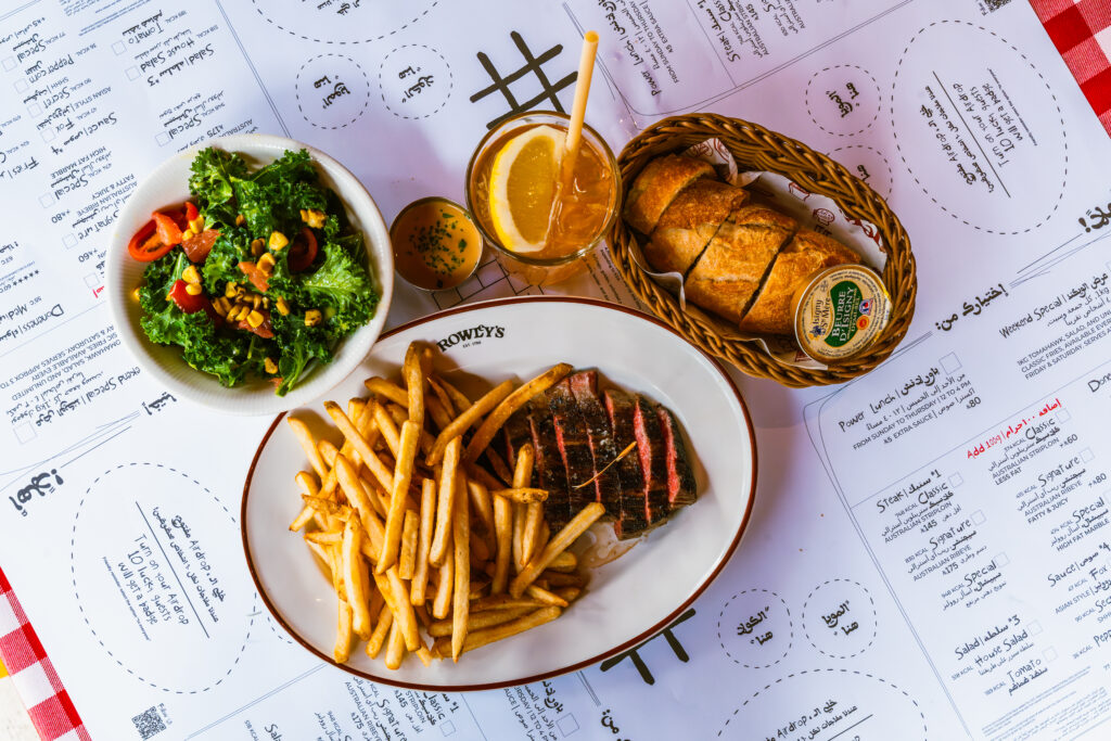في روليز كافد عندنا خيار مختلف. من الأحد إلى الخميس، من الساعة ١٢ ظهرًا إلى ٤ عصرًا، تحصل على ستيك ٢٠٠ غرام مع سلطة فيتنس وبطاطس كلاسيك غير محدودة بـ 80 ريال فقط.